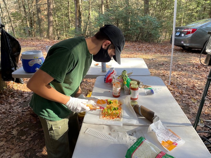 During the camping trip, scouts Tim Cap and Frankie Cavallaro were the two assigned cooks, cooking for the 15 scouts and leaders in attendance. Both scouts were working towards their cooking merit badge requirements.