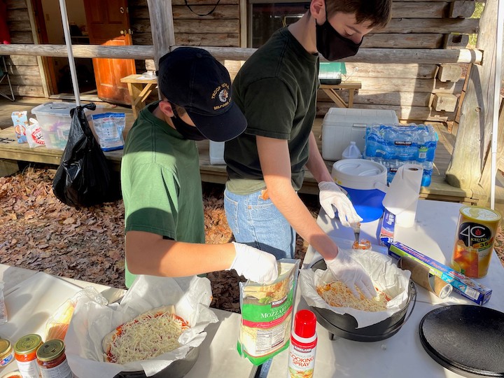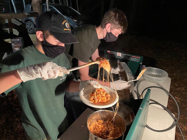 During the camping trip, scouts Tim Cap and Frankie Cavallaro were the two assigned cooks, cooking for the 15 scouts and leaders in attendance. Both scouts were working towards their cooking merit badge requirements.